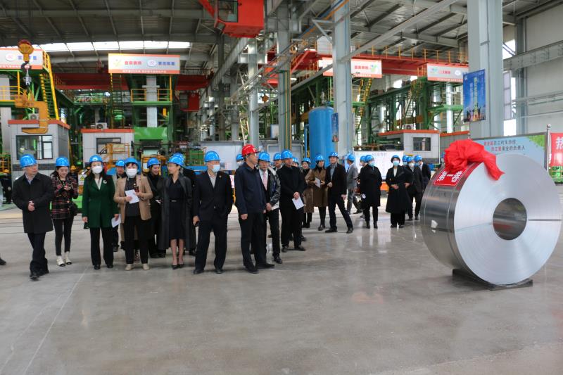 考察團(tuán)一行參觀了我公司新建年產(chǎn)200萬噸冷軋、鍍鋅項(xiàng)目,在劉欣書記的引導(dǎo)下,各位委員先后參觀了原料庫、酸軋車間、鍍鋅車間、成品庫,了解了黑色的熱軋帶鋼是如何經(jīng)過酸洗、冷軋、鍍鋅蛻變?yōu)楣饬恋腻冧\帶鋼整體生產(chǎn)工藝。